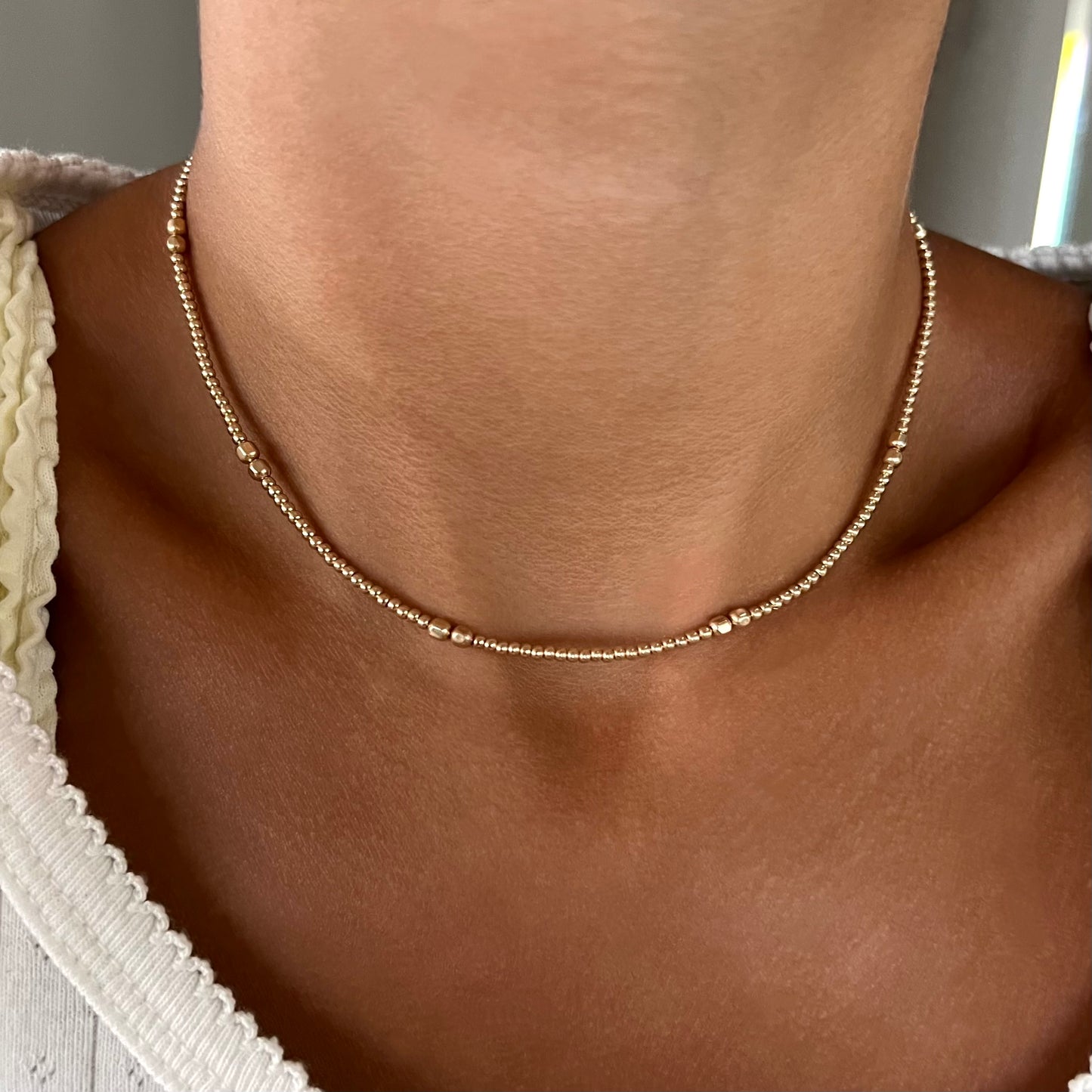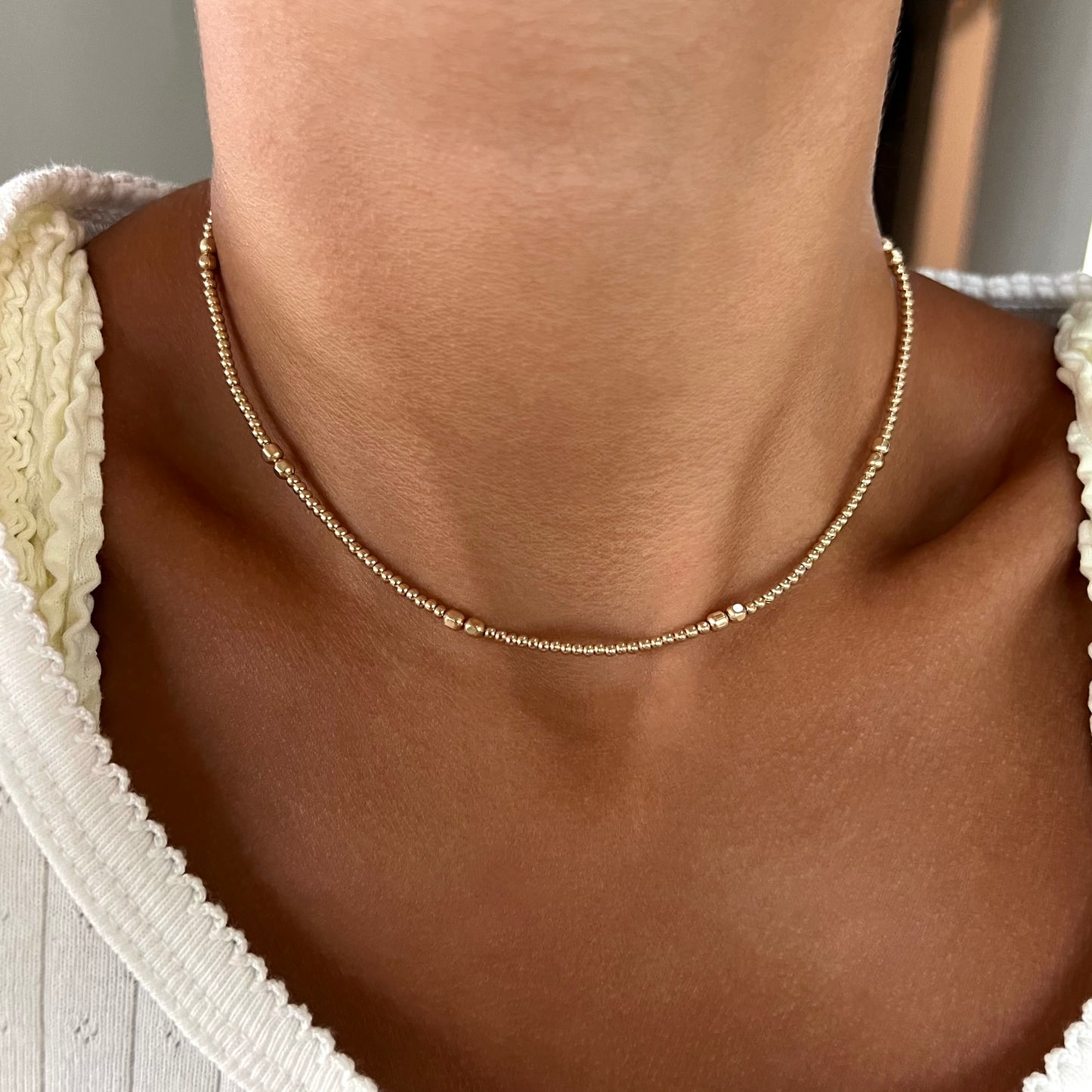 Choker style. 14k gold filled beads. 14k gold filled clasps + findings.